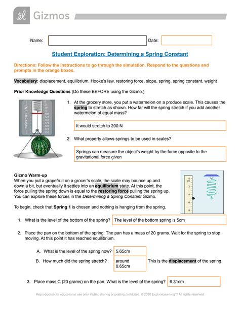 Determining A Spring Constant Gizmo Answer Key. Measure how much the spring. Web what is the spring constant for the spring on page 1.5?